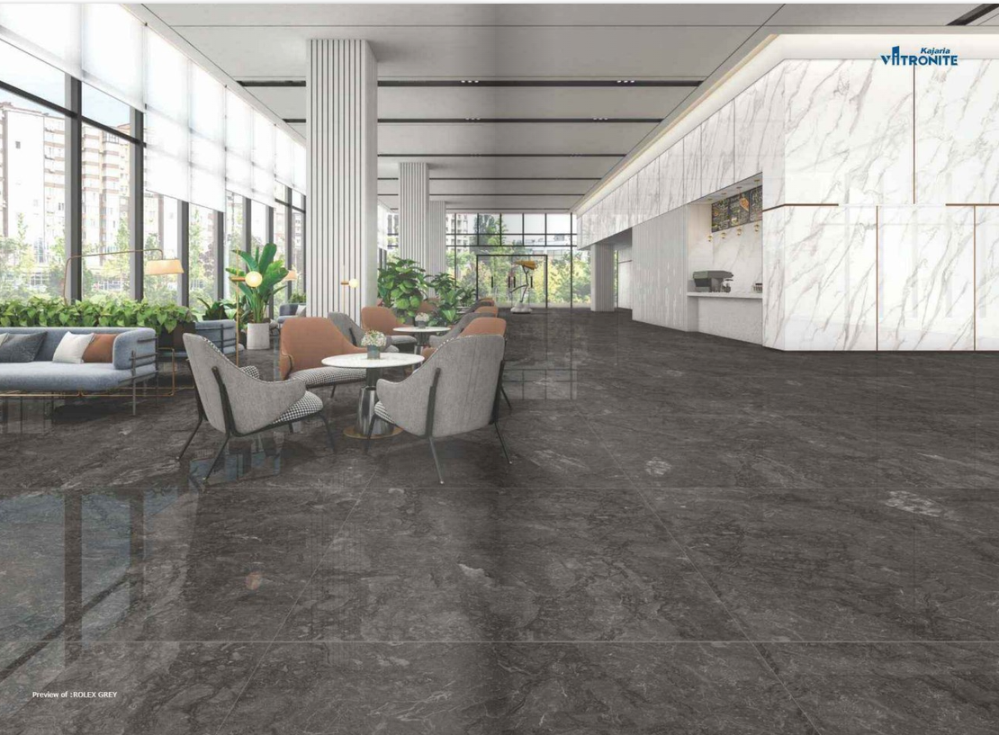 ROLEX GREY 120X180X1.5cm POR/GL/PL INDIA BX=2.16M2=23.25SF offers a sophisticated large-format porcelain tile featuring a striking dark and light marbling pattern. Measuring 120 by 180 cm with a thickness of 1.5 cm, this tile seamlessly combines durability with elegant aesthetics, ideal for creating expansive, seamless surfaces. Its refined glazing enhances both visual appeal and ease of maintenance, making it an excellent choice for high-end residential and commercial applications seeking a timeless, luxurious finish.