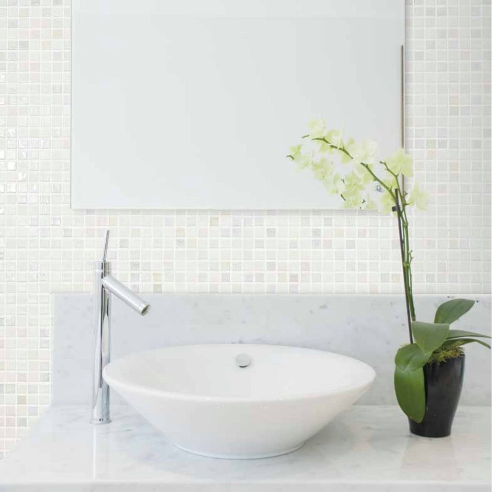 GLMD20 WHITE PEARL GLASS W/ MARBLE MOSAIC, 30 X30CM, CHINA
