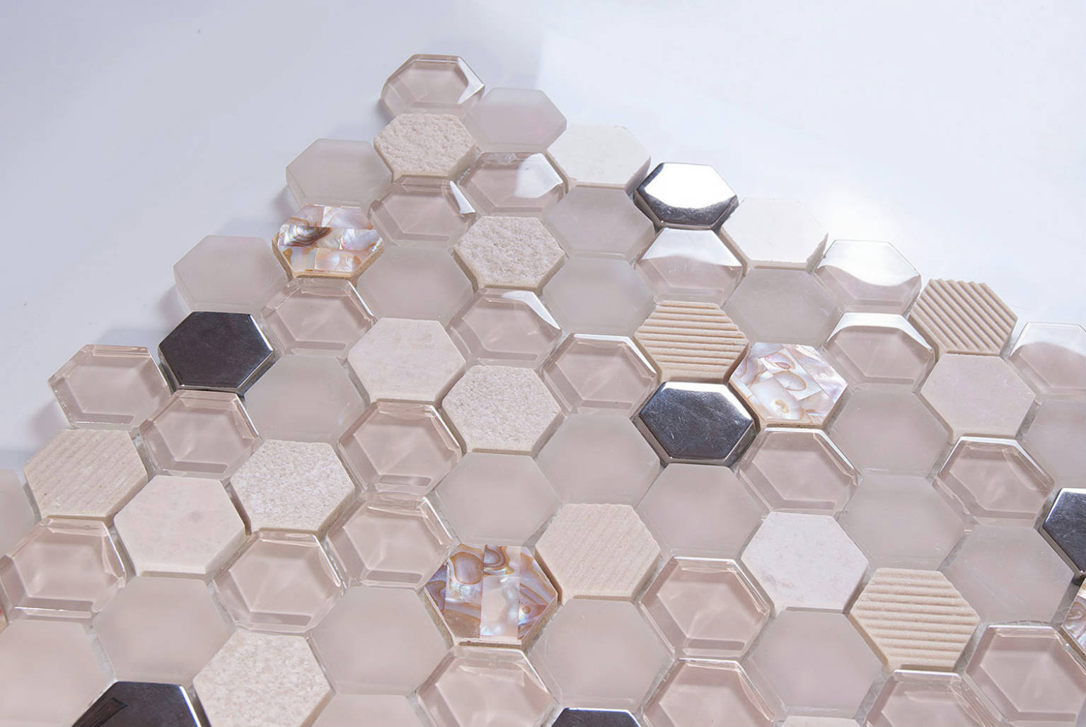HEX STONEGLASS OP WHITE 30X29CM MOSAIC SPAIN BX=0.53M2=5.7SF