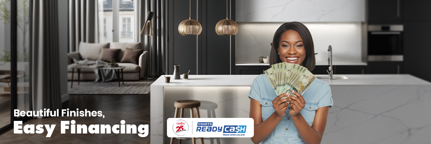 We’ve partnered with Courts Ready Cash to make it easier than ever for you to complete your renovation or building project. Now you can get the finishes you love today, and pay over time with flexible financing designed just for you.